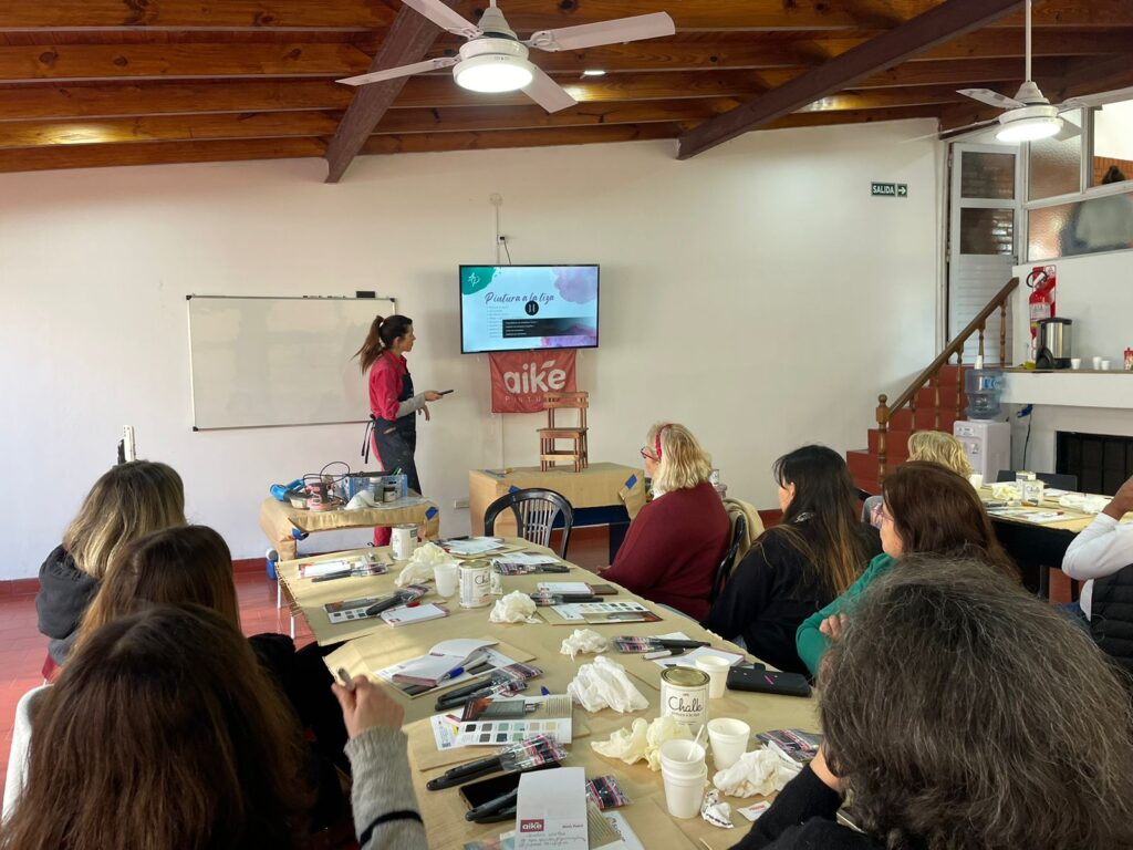 Luego, en agosto, se continuó con un curso más dinámicos como “Lavado de madera y pintura a la tiza de Aike”. Allí Analí Penza, especialista en restauración de muebles con Chalk Paint, llevó a cabo la capacitación teórica y práctica con particulares.