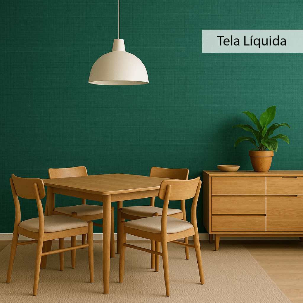 - Tela líquida: Está especialmente diseñada para imitar la textura y el aspecto de diversos tipos de telas, creando un ambiente sofisticado y elegante en las paredes. Es lavable e incluso viene aromatizada. Aporta un toque original y decorativo a cualquier espacio. Los colores disponibles ofrecen resistencia a los agentes climáticos, como la lluvia, el sol y las heladas, garantizando una belleza duradera, manteniendo su intensidad y brillo a lo largo del tiempo. La superficie revestida con tela líquida es fácil de limpiar y mantener.
