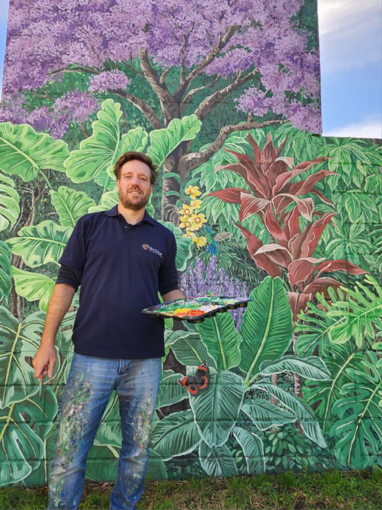 El artista Juan Manuel Botte llevó a cabo la realización de un mural en una vivienda en San Isidro y en este primer proyecto desde la pinturería Sui Color le entregamos pintura para que pueda desarrollar este hermoso diseño.